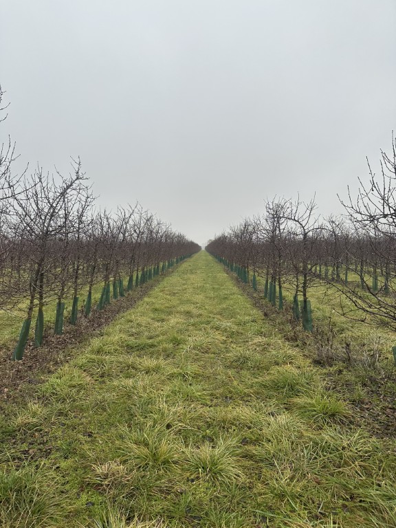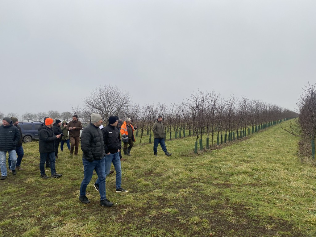 Azóta egy intenzív meggyültetvényt hoztak létre. Az egyik blokk 5 hektáros, mellette egy további 10 hektáros rész található, összesen 15 hektáron mintegy 30 000 fa áll, hektáronként körülbelül 2200 tővel. Az ültetvény kifejezetten meggykombájnra lett tervezve, nem ponyvás rázógépre, hanem olyan betakarítóra, mint a szőlőnél használatos „rájárós” kombájn. A térállás 4,5 x 1 méter, sűrű, sövényszerű koronaformával. Már a harmadik évben volt egy nulladik termés, az ötödik évre pedig 16 tonna/hektár hozamot értek el. A fajta Erika, Magyarországról származó, lémeggy, amelyet például a Rauch dolgoz fel. A 2024-es fagyos időszakban – amikor Magyarország jelentős része elfagyott – Alsószeliben ugyan voltak hideg éjszakák, de a meggy nem szenvedett komoly kárt, így a termés aranyat ért.