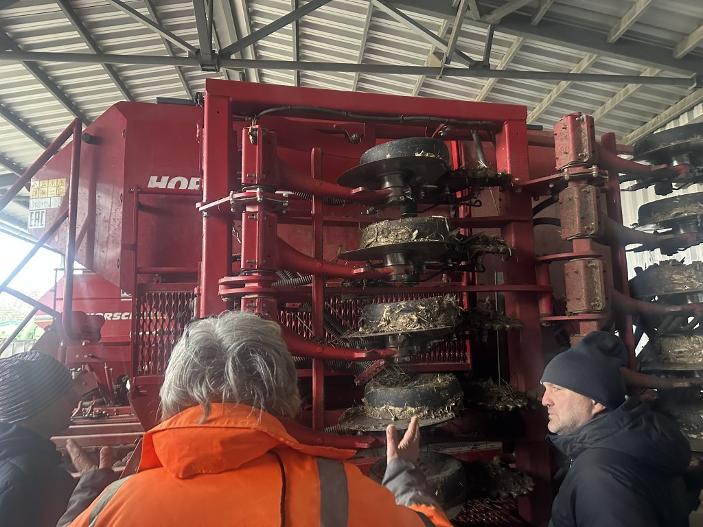 A vetéstechnológiában két fő gépük van. A régi Horsch Pronto sűrűn vetett gabonákhoz ma is megvan, mellette beszereztek egy Horsch Avatar direktvetőgépet. Az Avatar 6 méteres, dupla tartályos (60–40% megosztás), a nagy részbe a vetőmag kerül, a kisebbe foszfortúlsúlyos műtrágya. Általában 100 kg/ha foszforos műtrágyát juttatnak közvetlenül a mag mellé. Az Avatar ára jelentős beruházás volt, de a no-till irány támogatásához elengedhetetlen. A kukorica vetésére egy mechanikus Kinze vetőgépet használnak, amelyet fokozatosan építenek át Precision Planting elemekkel: sorzáró fúrókerék (furrow closer), soron belüli folyékony kijuttatás, sortisztítók. Azért kellett fejleszteni, mert a sekélyen művelt, felül száraz, alatta nyers talajban a vetőbarázda gyakran nyitva maradt, illetve a műtrágya a sor mellett kiszárította a talajt. Ma a sortisztítóval tisztítják a vetendő sávot, a magra közvetlenül foszfort és káliumot juttatnak folyadék formájában. A talajfertőzés ellen inkább a vetőmag csávázására támaszkodnak. A drótférgekkel így is akad gond, de a mélyebb mechanikus művelést igyekeznek elkerülni.
